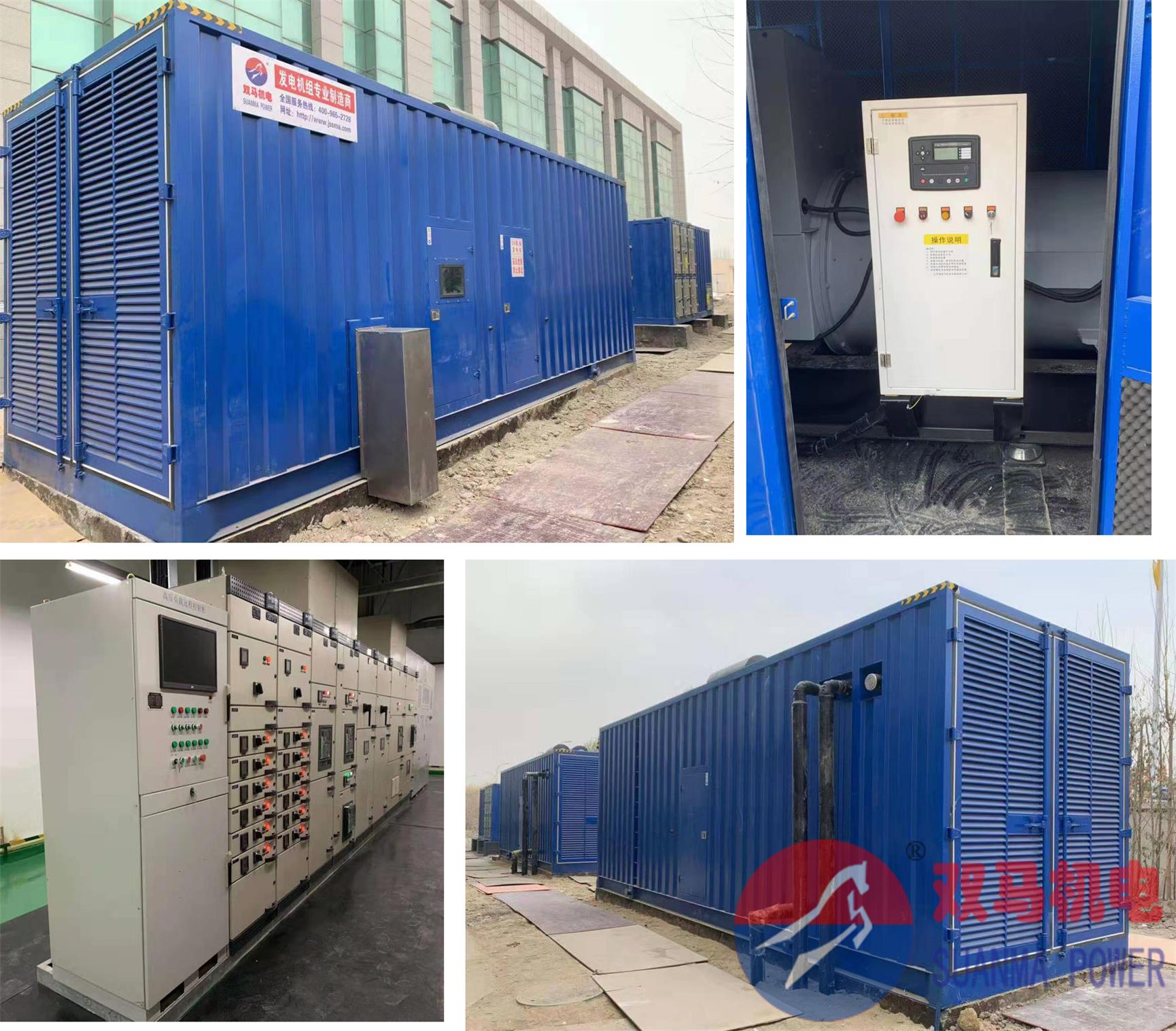 新疆大數據中心訂購2套1600KW高壓發電機組均采用集裝箱式靜音發電機組,電壓等級為10.5KV,采用深海DSE8610并機運行,柴油機采用進口PERKINS帕金斯4016TAG2A配套馬拉松MXH-1620-4高壓發電機,同時配套2000KVA專用負載測試箱,客戶工期緊急,我們全體員工天天加班最終按時交付,經過2名工程師現場調試培訓,使用戶一次性通過當地各個部門的驗收,得到客戶的高度贊許!